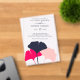 These custom wedding invitations have a bold, modern look with a clean, spare style. They feature simple illustrations of ginkgo leaves in navy blue, bright coral and light pink with your information in coordinating navy blue. The text and graphics are set against a clear background on these transparent acrylic invites.