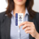 Bold and modern navy blue press pass photo identification badge. The design features "Press Pass" displayed along the side for easy view and identification. The photo is displayed in a circle frame to create a modern look. Customize with logo, photo, job title, joined/valid date and ID number. The reverse side features navy and white design with a logo and address. The colour can be changed to any colour to suit your brand, simply click personalize and click to customize further.