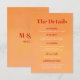 Bold Modern Orange Sunset Monogram Wedding Details Enclosure Card