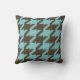 Bold modern teal brown houndstooth with monogram throw pillow