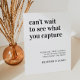 We placed disposable cameras on all of the tables with this challenge. It is an antiquated technology, but our guesets had a great time taking the pictures fo the listed items, as well as with various family and friend groups. When the sun was setting, several people were taking pictures of the sunset. It was just a good way to get people up, talking and mixing during the dinner event. The printing was good quality and the sign withstood a brisk breeze.
