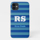 Bold Monogram & Name, Lt. Teal Lines on Deep Blue Case-Mate iPhone Case
