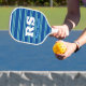 Bold Monogram & Name, Lt. Teal Lines on Deep Blue Pickleball Paddle
