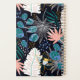 Personnalisez ce planificateur avec votre nom en italique noir encadré par un rectangle blanc, sur un audacieux motif botanique de feuillage tropical dans les tons rose, bleu et vert roux sur un arrière - plan noir.