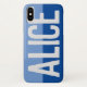 Have your choice of name shown boldly on a two-tone phone case. Example shows the name Alice. Personalise with your choice of short name.