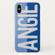 Have your choice of name shown boldly on a two-tone phone case. Example shows the name Angie. Personalise with your choice of short name.