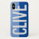Have your choice of name shown boldly on a two-tone phone case. Example shows the name Clive. Personalise with your choice of short name.