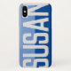 Have your choice of name shown boldly on a two-tone phone case. Example shows the name Susan. Personalise with your choice of short name.