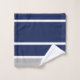 Make a statement with this bold navy blue, white, and grey striped bath towel set. Both the hand towel and the bath towel have your monogram in white at the bottom. Especially appropriate for a man, but attractive in any bathroom.