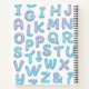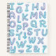 This vibrant neon-style alphabet notebook features playful, hand-drawn letters in shades of aqua blue and purple with a bold, reflective look. Perfect for students, artists, or anyone who loves expressive typography. Ideal for note-taking, journalling, or creative sketching. Make your school supplies stand out with this eye-catching and fun notebook design!