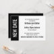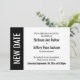 Here's a bold, modern card for notifying your guests if it's become necessary to change your wedding date. Use the template fields to add your personal details and make this unique, simple design your own. A colour block along the left is black, matching the text and back of the card; "NEW DATE" appears in bold white over this strip on the left. All fonts and colours are also editable. Please reach out with any special requests or for customizing assistance. Other pieces with alternate wording are also available in the collection.