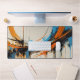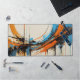 Upgrade your workspace with this visually striking desk mat. The artwork showcases a powerful mid-century abstract composition with sweeping orange and blue curves and sharp industrial lines. It provides a smooth working surface while adding a highly professional, energetic, and creative vibe to your desk environment.