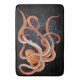 A bold and mesmerizing octopus illustration unfurls its flowing tentacles across a deep black background, intertwined with an intricate blue mandala pattern. Rendered in vivid orange with delicate detailing, this design blends ocean life with mystical geometry, creating a striking piece that feels both powerful and meditative. Perfect for marine life lovers, octopus fans, and those drawn to dramatic, statement-making designs.
