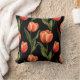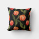 Bold Orange Tulips on Black - Striking Floral Art Throw Pillow