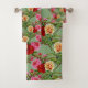 Bold Pattern Red Yellow Pink Roses and Foliage Bath Towel Set