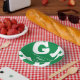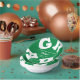GRAD in bold white lettering curves around the edges of these green graduation paper bowls personalized for your graduate - perfect for serving snacks, salads, desserts and more. MATCHING items and more pre-done colour combinations in our store.