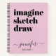Imagine, Sketch, Draw, Bold Girly Pink Black Elegant Personalized Sketchbook with Your Name in Hand Lettered Script Font Typography. Elke Clarke© Add you name or monogram or text using the customize menu.