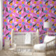 bold pink floral abstract modern pretty Wallpaper . Colourful pink vibrant wallpaper for home decoration, bedrooms decoration, bathrooms decoration. Unique and originak colourful wallpaper for trendy home decoration.