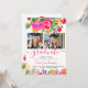 The front features two photos, perfect for showcasing different moments or portraits, paired with a flowing script headline that adds a celebratory touch. The back continues the floral theme with space for event details, making the full layout feel cohesive and thoughtfully designed.
