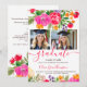 Bold Pink Orange Boho Floral 2-Photo Graduation Invitation