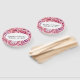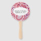 This program hand fan has a bold pink and white paisley design with tear drop shapes and daisy flowers. Customize your name and dates in the white oval with the template.