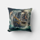 Bold Pirate Ship Navigating Stormy Seas at Dusk Throw Pillow