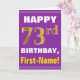 Bold, Purple, Faux Gold 73rd Birthday w/ Name Card