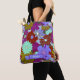 Bold purple green floral pattern and custom name tote bag