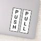 Bold white with black text push and pull door stickers for any building, retail, store, restaurant, apartment, etc. Vinyl decal for any glass or metal door.