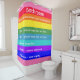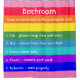 Fun, rainbow stripes shower curtain with friendly hints on how to. help keep the community bathroom clean for him or her. Customers can change the text.