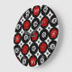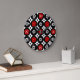 A bold red and black geometric circle pattern item with big red and white flowers inside each trendy mod style circle.