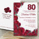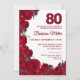 A vibrant 80th birthday invitation with bold red ranunculus flowers on a clean white background. Features large floral-filled “80” typography and elegant fonts throughout. Customize all text for name, date, venue, and RSVP. A striking design perfect for milestone celebrations. Matching Save the Date available. Enjoy!