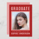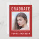 Gras faire-part rouge de graduation et grande invitation à la fête. L'invitation a un côté légèrement rouge arrière. Personnalisez-le en remplaçant le texte de l'espace réservé et en remplaçant l'exemple/l'espace réservé par votre propre photo. Pour plus d'options comme changer la police et sa taille/couleur ou l'espacement entre les lettres cliquez sur le bouton "Personnaliser". *Veuillez noter que le filigrane Zazzle qui apparaît dans l'aperçu du zoom n'apparaîtra PAS sur le produit imprimé final. © Bois de rose et agrumes