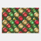 Bold Red Green Gold Christmas Ornaments Wrapping Paper Sheet