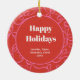 Bold Red Pink Ribbon Pattern Custom Photo Holiday Ceramic Ornament