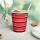 Treat guests to warm and festive drinks in these bold graphic design paper cups with red and white offset scalloped stripes on a rich burgundy red background. The white text is easily personalized to mark a special occasion or celebration or can be deleted completely for a design that you can use year after year.