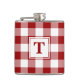 Bold Red White Plaid Pattern with Monogram Hip Flask