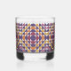 Bring a splash of retro flair to your bar cart with this stylish **Rocks Glass** featuring a bold geometric pattern of overlapping circles in rich purple, vibrant orange, sunny yellow, and deep red. The perfect mix of vintage and modern for sipping whiskey, cocktails, or mocktails in true mid-century style.