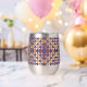 Bring vintage charm and modern flair to your happy hour with this **Stemless Wine Tumbler** wrapped in bold, colourful circles. Whether you're sipping wine, cocktails, or mocktails, this tumbler brings a splash of personality to every pour.