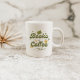 An elegant, green and gold "books + coffee" mug, designed with retro typography and botanical elements. Please message the designer if you wish to have any colour changes done for you.