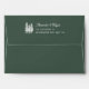 Bold Retro Green Mountain Wedding envelope with custom return address in script on the back flap and a tree illustration. This wedding envelope is part of a mountain wedding stationery suite with matching wedding invitations and more.