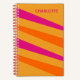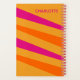 Groovy 1970's retro vintage monogram custom notebook. Bold stripes in orange, pink and mustard. Personalize this stylish trendy colourful script typography.