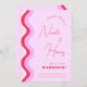 Surprise your friends & family with these cool Save the Date cards, featuring bold retro waves in pink and red & custom text of your choice. Easily add your own details by clicking on the "personalize" option.