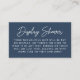 Keep your baby shower stylish and simple with this display shower enclosure card featuring “Display Shower” in white script on a navy background. The clean, modern layout includes space for your personalized message or display shower poem. A perfect match for boy baby showers, this design pairs effortlessly with our Oh Baby Script collection for a polished and cohesive invitation suite.