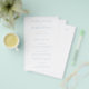 Classic style wedding menus featuring a simple yet elegant design with your names in script and your details in serif fonts.