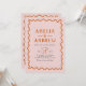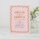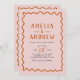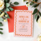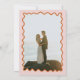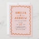 This bold coral pink wedding invitation embraces a retro theme, featuring a vibrant wiggly orange border and simple typography. Its unique bright design includes space to add a photo on the back, and personalize the couple’s details, making it perfect for couples wanting to celebrate a retro-inspired, boho, fall, or summer wedding. Explore matching items in our wedding suite to complete the look!