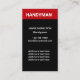Simple bold Handyman and home maintenance business card vertical format business profile cards in red black and white with your profession highlighted you simple replace our text with yours.