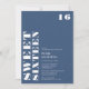 Bold simple white on blue sweet 16 birthday party celebration invitation written in oversized bold font in white