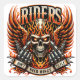A striking graphic featuring a skull with intense eyes, flanked by vibrant, flaming wings. The image portrays two metallic hands making a gesture, conveying a sense of rebellion and freedom. The bold text “Riders†crowns the design, echoing a motif of strength and individuality. The contrasting colours of deep red, orange, and black enhance the dramatic effect, making this artwork perfect for those who embrace a spirited lifestyle.