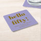 This personalized coaster design features a soft purple background with a bold “hello fifty” message and custom celebration details. Designed for milestone birthday parties, it works well for cocktail tables, bar setups, and casual seating areas. The cool color combination coordinates easily with modern party décor. A functional detail that helps keep drink areas consistent throughout the celebration.